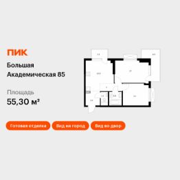 Продаётся 2-комн. апартаменты площадью 55,3 кв.м на 5 этаже 24 этажного дома (Корпус 3.6, Секция 2) проекта ПИК Большая Академическая 85. Светлый просторный подъезд на уровне земли, функциональная планировка, большие окна, c отделкой.