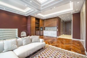 Апартамент выдержан в современном стиле с высокими потолками с техникой Miele, с умным домом KNX, акустикой Sonance Hi-End класса, переоборудованной и доработанной приточно-вытяжной системой.