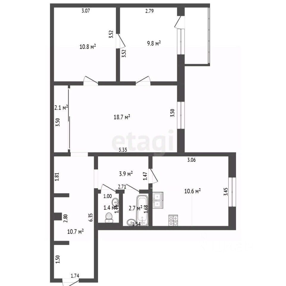 Продается трехкомнатная квартира площадью 70,7 кв. м в добротном сталинском доме.