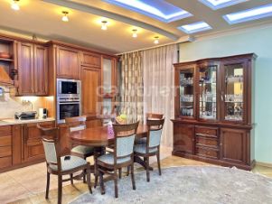 электрическая плита, духовой шкаф, микроволновая печь, встроенный холодильник, обилие систем хранения, барная стойка и сервант. Пространство удобно как для повседневной жизни, так и для приёма гостей.