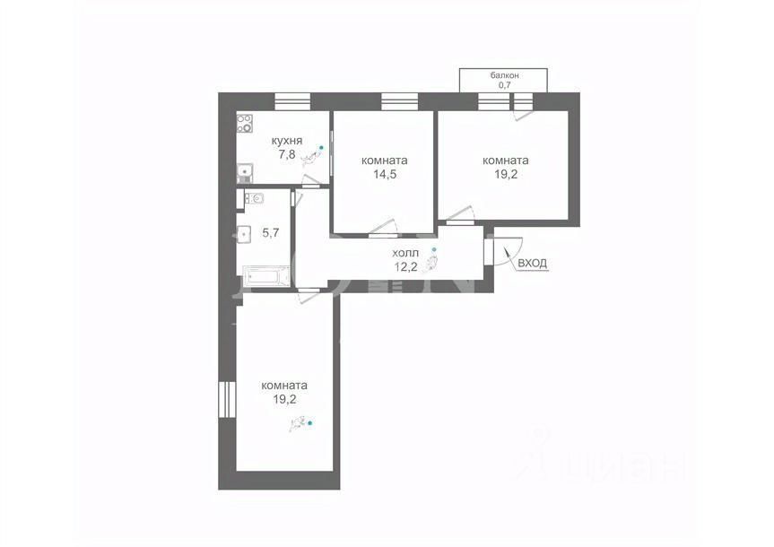 Функциональная планировка: гостиная, кухня, две спальни, совмещенный санузел с большой ванной, прихожая, балкон.