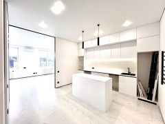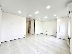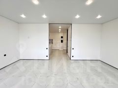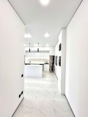 Несколько уровней освещения комнаты, а также кухонной и обеденной зоны. Стены покрашены экологичной износостойкой краской. На полу широкоформатный испанский керамогранит. Стены идеально выровнены и окрашены в нейтральный белый. Потолки навесные из гипсокартона с теневым профилем, создающие мягкое, рассеянное освещение. Стильные широкоформатные раздвижные двери: настоящий эксклюзив и дополнение интерьера.