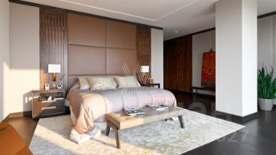 Редкая особенность планировки апартамента — просторная мастер-спальня. В ней организованы две гардеробные — мужская и женская, два санузла с панорамными окнами, сауна и steam-room Tylo. Спланирована кухня-гостиная с обеденной зоной на восемь персон, мастер-спальня, гостевая спальня с гардеробной, кабинет или дополнительная спальня, санузел с душем, хозяйственный блок с постирочной и кладовой, гостевой санузел, гардеробная.
