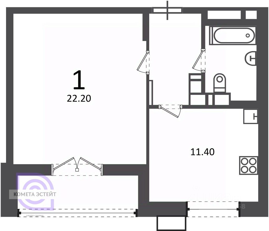 • Площадь: 42,3 м²