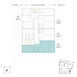 ЖК "Детали" | 3-комнатная квартира, 60.70 м², 16-й этаж.