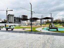 Благоустроенный зелёный двор с детской площадкой, местами для отдыха и аллеями для прогулок. Подземный и наземный паркинг.
