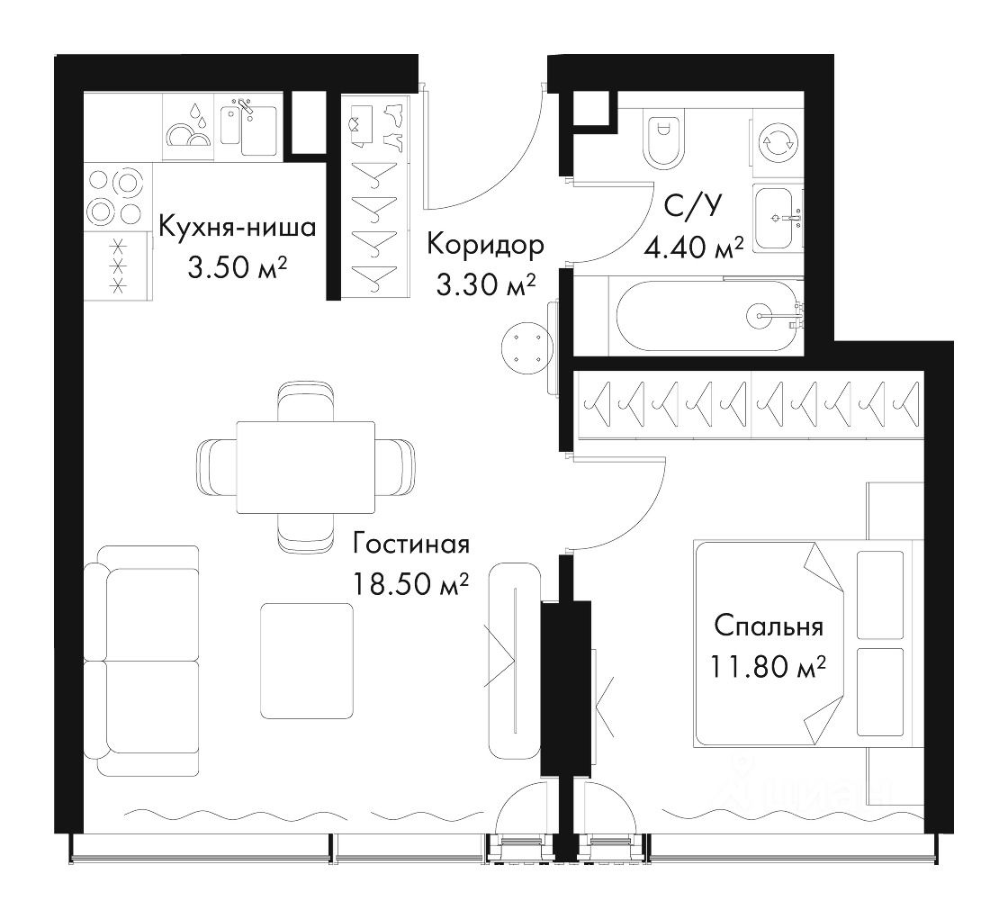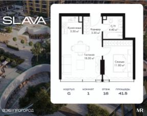 В продаже 1-комнатная квартира площадью 41.50 м² на 16-м этаже корпуса G.