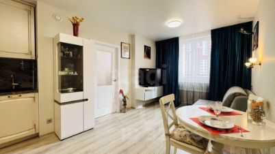 Площадь квартиры 35,2кв м. Кухня-гостиная и спальня. Широкая лоджия, утепленная, с теплым полом и панорамным остеклением.