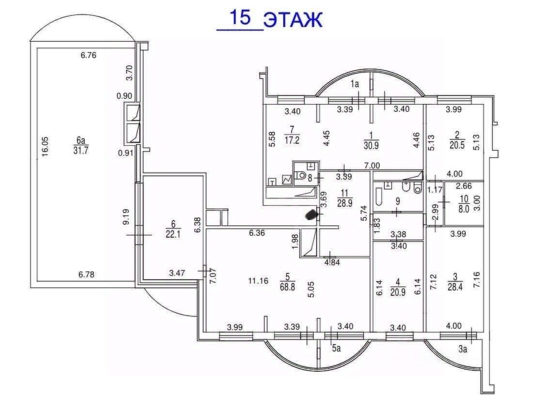 Общая площадь квартиры — 254,4 м2 (без учёта террасы и зимнего сада), при этом всё пространство удобно расположено на одном этаже.