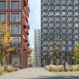 На территории проекта предусмотрена развитая внутренняя инфраструктура: собственный детский сад и 10 коммерческих помещений на первых этажах домов.
