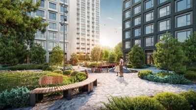 Концепция благоустройства создана в соавторстве с именитым бюро GAFA. На площади 0,35 га расположатся зоны для отдыха, занятий спортом и прогулок. Во дворе для жителей жилого комплекса будет создан коворкинг прямо на свежем воздухе - открытые беседки и Wi-Fi на территории. Атмосферу приватности подчеркнёт обилие растительности - деревья и кустарники займут 50% двора. За счёт большого количества хвойных насаждений территория жилого комплекса будет зелёной круглый год.