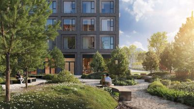 На территории проекта предусмотрена развитая внутренняя инфраструктура: собственный детский сад и 10 коммерческих помещений на первых этажах домов.