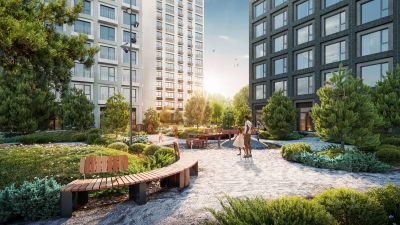Концепция благоустройства создана в соавторстве с именитым бюро GAFA. На площади 0,35 га расположатся зоны для отдыха, занятий спортом и прогулок. Во дворе для жителей жилого комплекса будет создан коворкинг прямо на свежем воздухе - открытые беседки и Wi-Fi на территории. Атмосферу приватности подчеркнёт обилие растительности - деревья и кустарники займут 50% двора. За счёт большого количества хвойных насаждений территория жилого комплекса будет зелёной круглый год.