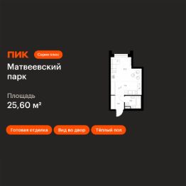 Продаётся квартира-студия площадью 25,6 кв.м на 1 этаже 14 этажного дома (Корпус 4.8, Секция 5) проекта ПИК Матвеевский парк. Светлый просторный подъезд на уровне земли, функциональная планировка, большие окна, c отделкой.