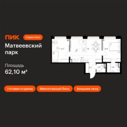 Продаётся 2-комн. квартира площадью 62,1 кв.м на 2 этаже 31 этажного дома (Корпус 4.3, Секция 3) проекта ПИК Матвеевский парк. Светлый просторный подъезд на уровне земли, функциональная планировка, большие окна, c отделкой.