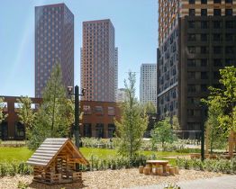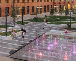 У проектов будет общая инфраструктура и благоустроенная территория. Уже открыта часть пешеходного бульвара, который строится по проекту британского бюро. Здесь можно гулять после работы, играть с детьми, заниматься спортом и отдыхать у сухого фонтана с ночной подсветкой. В будущем в кластере появится пешеходный мост, который соединит жилые кварталы, и комьюнити-центр "ОМА" с магазинами, кафе, местами для спорта, встреч и общения.