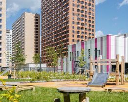В проекте жилые дома, 2 детских сада на 150 и 235 мест, школа на 1100 мест и подземные паркинги на 525 машиномест. В зелёных дворах-парках будут места для отдыха, современные детские и спортивные площадки. На первых этажах откроются магазины, кафе и другие сервисы — за кофе и свежим хлебом к завтраку можно будет просто спуститься на лифте.