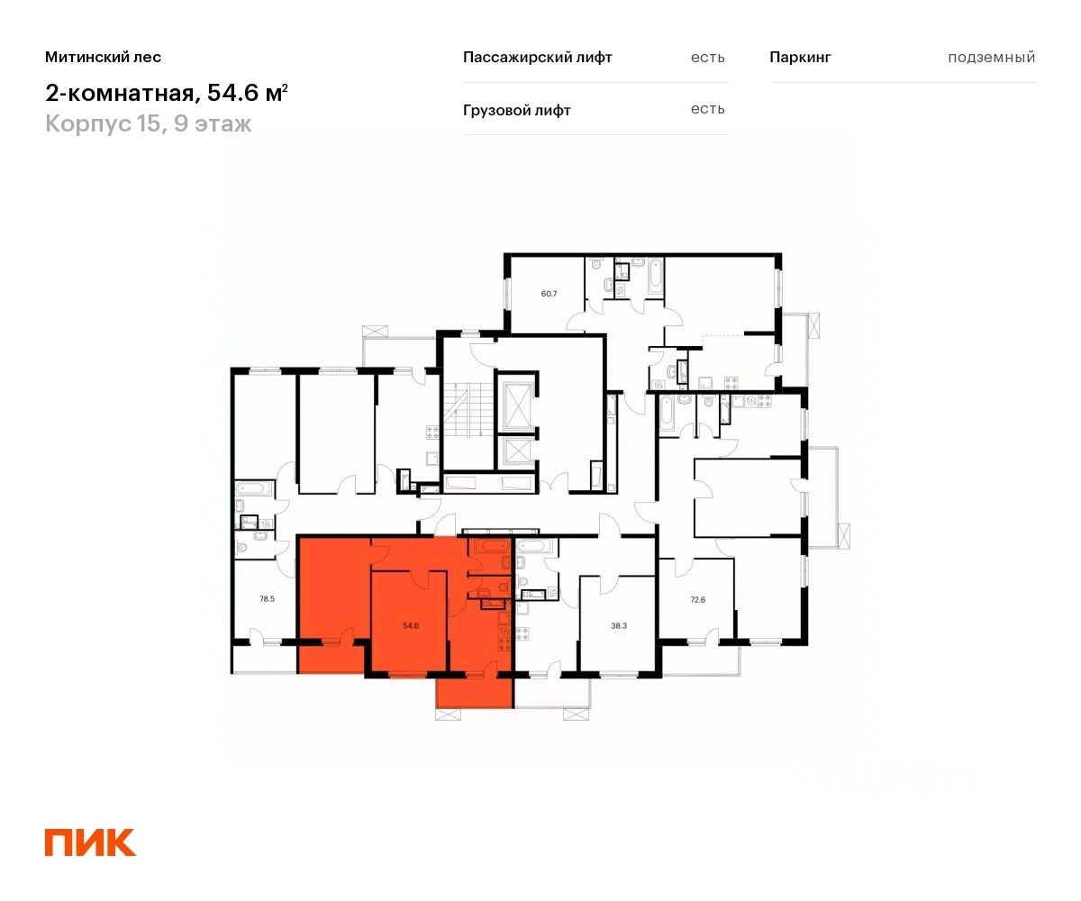 Продаётся 2-комн. квартира площадью 54,6 кв.м на 9 этаже 25 этажного дома (Корпус 15, Секция 4) проекта ПИК Митинский лес. Светлый просторный подъезд на уровне земли, функциональная планировка, большие окна, без отделки.