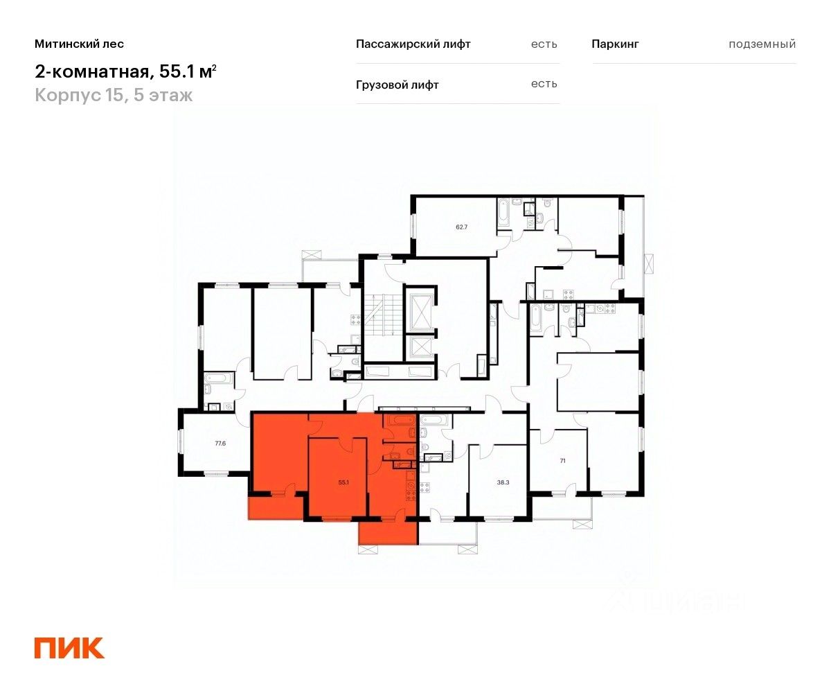 Продаётся 2-комн. квартира площадью 55,1 кв.м на 5 этаже 25 этажного дома (Корпус 15, Секция 7) проекта ПИК Митинский лес. Светлый просторный подъезд на уровне земли, функциональная планировка, большие окна, без отделки.