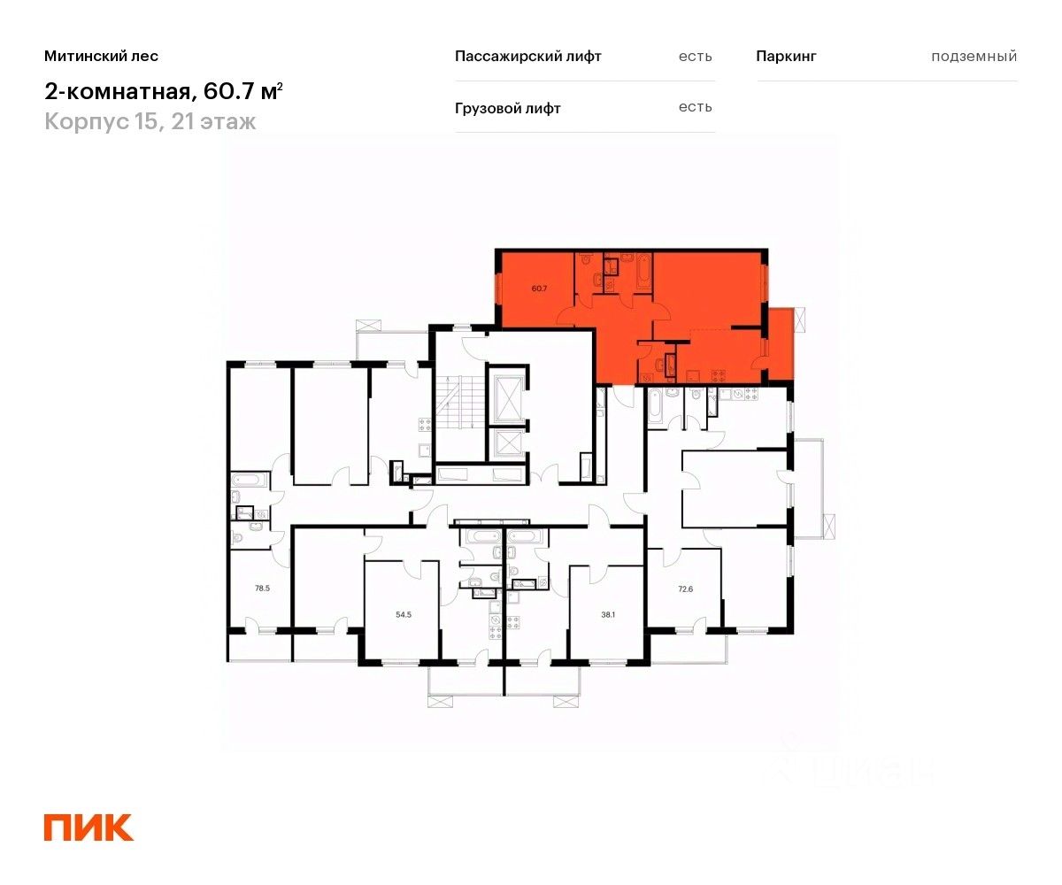 Продаётся 2-комн. квартира площадью 60,7 кв.м на 21 этаже 25 этажного дома (Корпус 15, Секция 4) проекта ПИК Митинский лес. Светлый просторный подъезд на уровне земли, функциональная планировка, большие окна, без отделки.