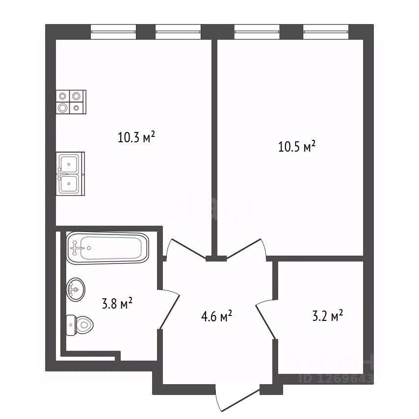 Площадь кухни: 10,3 кв.м.