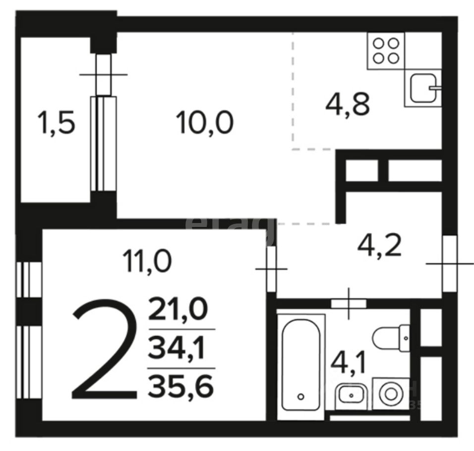 Просторная планировка с двумя комнатами и совмещённым санузлом.
