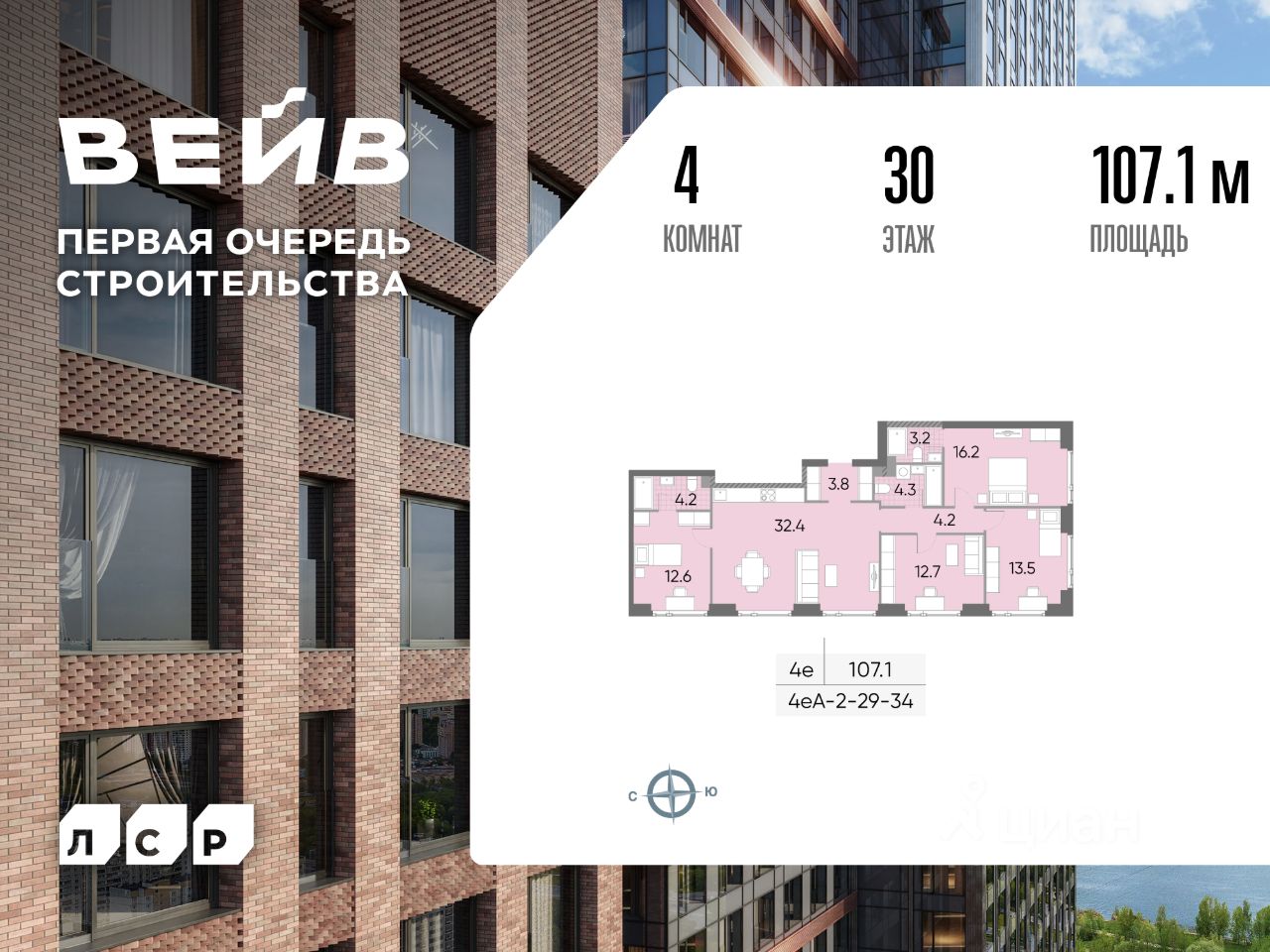 Продается 4-комн. кв-ра площадью 107.80 кв.м на 30 этаже 42 этажного монолитного дома в ЖК "ВЕЙВ" от Группа ЛСР. Ключевым преимуществом ВЕЙВ является благоустроенная набережная со смотровой площадкой, беговыми и велодорожками, детскими и спортивными. В центре квартала появится зеленый пешеходный бульвар с детскими и спортивными площадками, а также зоной тихого отдыха.