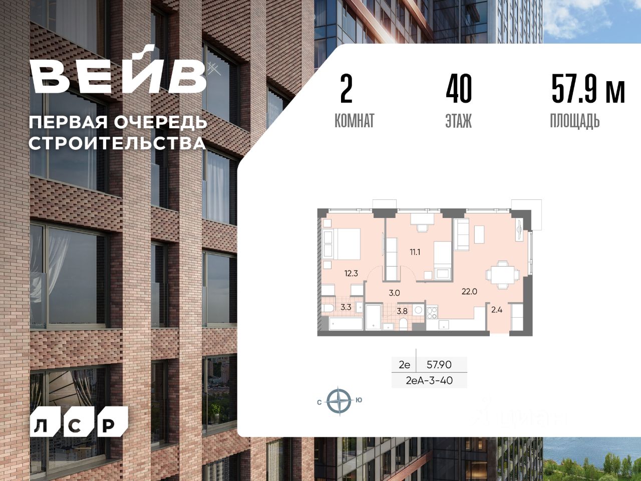 Продается 2-комн. кв-ра площадью 57.90 кв.м на 40 этаже 42 этажного монолитного дома в ЖК "ВЕЙВ" от Группа ЛСР. Ключевым преимуществом ВЕЙВ является благоустроенная набережная со смотровой площадкой, беговыми и велодорожками, детскими и спортивными. В центре квартала появится зеленый пешеходный бульвар с детскими и спортивными площадками, а также зоной тихого отдыха.