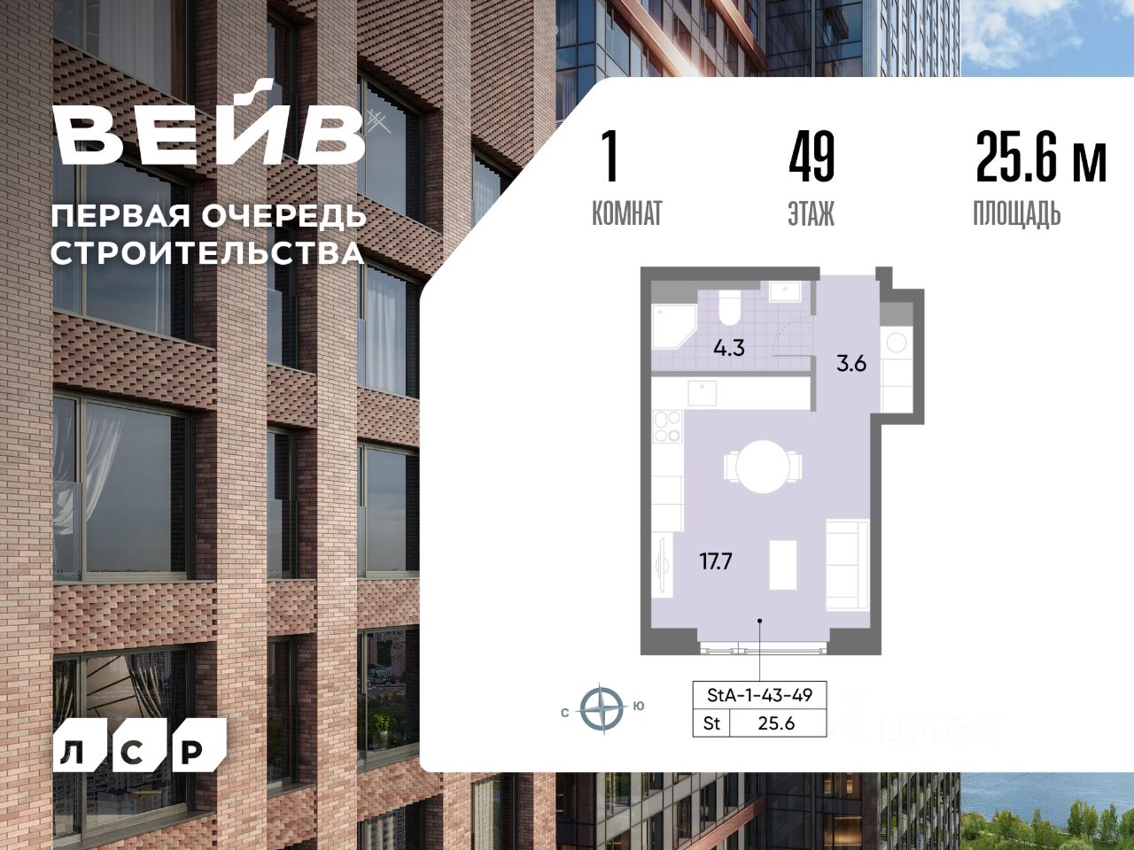 Продается квартира студия площадью 26.00 кв.м на 49 этаже 52 этажного монолитного дома в ЖК "ВЕЙВ" от Группа ЛСР. Ключевым преимуществом ВЕЙВ является благоустроенная набережная со смотровой площадкой, беговыми и велодорожками, детскими и спортивными. В центре квартала появится зеленый пешеходный бульвар с детскими и спортивными площадками, а также зоной тихого отдыха.