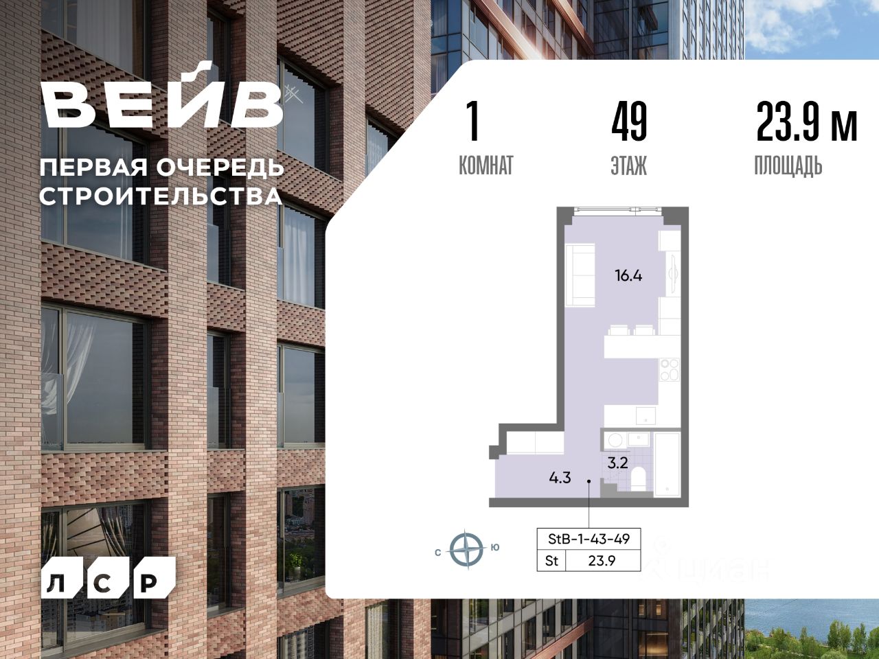 Продается квартира студия площадью 23.90 кв.м на 49 этаже 52 этажного монолитного дома в ЖК "ВЕЙВ" от Группа ЛСР. Ключевым преимуществом ВЕЙВ является благоустроенная набережная со смотровой площадкой, беговыми и велодорожками, детскими и спортивными. В центре квартала появится зеленый пешеходный бульвар с детскими и спортивными площадками, а также зоной тихого отдыха.