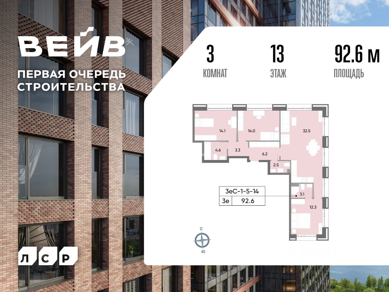 Продается 3-комн. кв-ра площадью 93.40 кв.м на 13 этаже 14 этажного монолитного дома в ЖК "ВЕЙВ" от Группа ЛСР. Ключевым преимуществом ВЕЙВ является благоустроенная набережная со смотровой площадкой, беговыми и велодорожками, детскими и спортивными. В центре квартала появится зеленый пешеходный бульвар с детскими и спортивными площадками, а также зоной тихого отдыха.