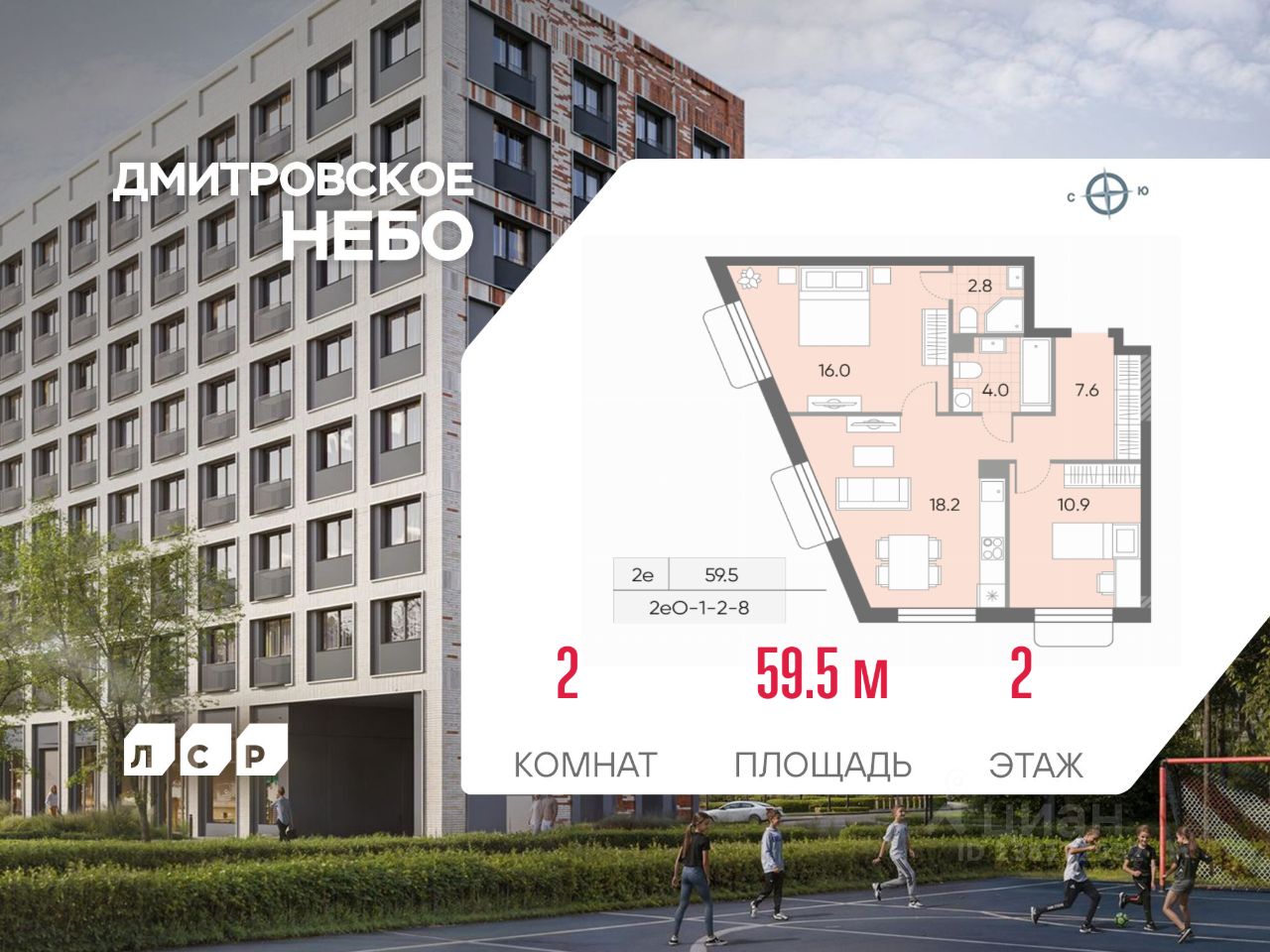 Продается 2-комн. кв-ра площадью 59.50 кв.м на 2 этаже 8 этажного монолитного дома в ЖК "ДМИТРОВСКОЕ НЕБО" от Группа ЛСР. "Дмитровское небо" —жилой квартал бизнес-класса в Северном административном округе в районе Западное Дегунино. Находится среди парков и водоемов, вблизи всей необходимой для современной жизни инфраструктуры. Особенностью проекта является благоустроенный сквер площадью 1.5 га.