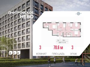 Продается 3-комн. кв-ра площадью 78.60 кв.м на 3 этаже 8 этажного монолитного дома в ЖК "ДМИТРОВСКОЕ НЕБО" от Группа ЛСР. "Дмитровское небо" —жилой квартал бизнес-класса в Северном административном округе в районе Западное Дегунино. Находится среди парков и водоемов, вблизи всей необходимой для современной жизни инфраструктуры. Особенностью проекта является благоустроенный сквер площадью 1.5 га.
