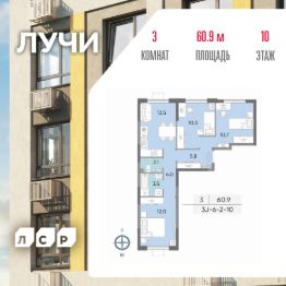 Продается 3-комн. кв-ра площадью 61.20 кв.м на 10 этаже 10 этажного монолитного дома в ЖК "ЛУЧИ" от Группа ЛСР. Семейный квартал "Лучи" расположен в ЗАО в одном из самых зелёных и благоприятных для жизни районов столицы Солнцево, который характеризуется отличной транспортной доступностью, развитой социальной инфраструктурой и обилием зеленых пространств в шаговой доступности.