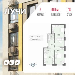 Продается 2-комн. кв-ра площадью 61.90 кв.м на 18 этаже 24 этажного монолитного дома в ЖК "ЛУЧИ" от Группа ЛСР. Семейный квартал "Лучи" расположен в ЗАО в одном из самых зелёных и благоприятных для жизни районов столицы Солнцево, который характеризуется отличной транспортной доступностью, развитой социальной инфраструктурой и обилием зеленых пространств в шаговой доступности.