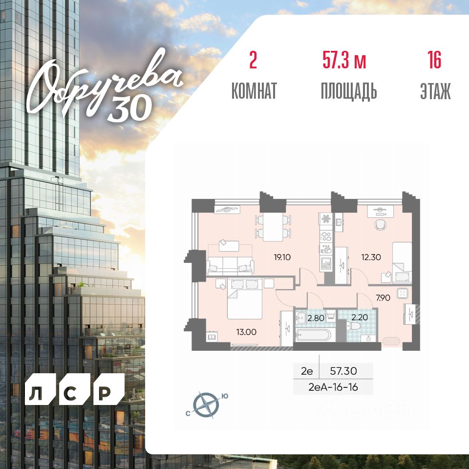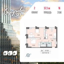 Продается 2-комн. кв-ра площадью 57.30 кв.м на 16 этаже 57 этажного монолитного дома в ЖК "ОБРУЧЕВА 30" от Группа ЛСР. "Обручева 30" - дом бизнес-класса в престижном районе ЮЗАО и шаговой доступности от станции метро "Калужская". Два корпуса неповторимой формы от бюро KAMEN Architects с уникальными форматами квартир: от двухуровневых с камином до квартир с террасой. "Клубная" инфраструктура для резидентов: студии йоги и сайкла, тренажерные залы, коворкинг-зона, конференц-залы, кинозал и детские игровые комнаты.