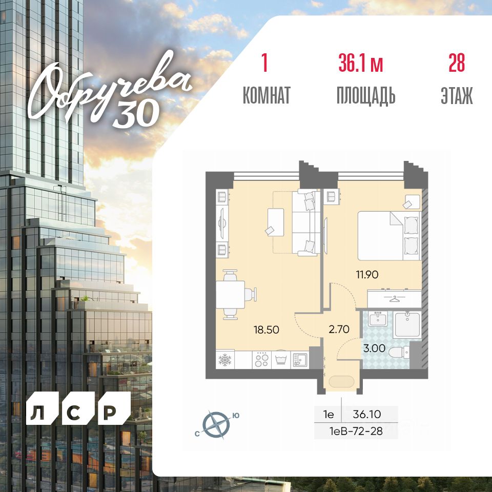 Продается 1-комн. кв-ра площадью 36.10 кв.м на 28 этаже 57 этажного монолитного дома в ЖК "ОБРУЧЕВА 30" от Группа ЛСР. "Обручева 30" - дом бизнес-класса в престижном районе ЮЗАО и шаговой доступности от станции метро "Калужская". Два корпуса неповторимой формы от архитекторного бюро "Камень" с уникальными форматами квартир: от двухуровневых с камином до квартир с террасой. "Клубная" инфраструктура для резидентов: студии йоги и сайкла, тренажерные залы, коворкинг-зона, конференц-залы, кинозал и детские игровые комнаты.