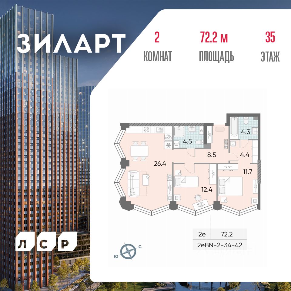 Продается 2-комн. кв-ра площадью 72.20 кв.м на 35 этаже 43 этажного монолитно-кирпичного дома в ЖК "ЗИЛАРТ" от Группа ЛСР. ЗИЛАРТ СПАРК — новый дом бизнес-класса в жилом квартале "ЗИЛАРТ" высотой 150 метров. Он сочетает в себе современную архитектуру, передовые технологии и восхитительные виды на ландшафтный парк "Тюфелева Роща" и бульвар Братьев Весниных. Близкое расположение к музейно-выставочному центру "Коллекция" и концертному залу создает вдохновляющую атмосферу места, где переплетаются жизнь и творчество.