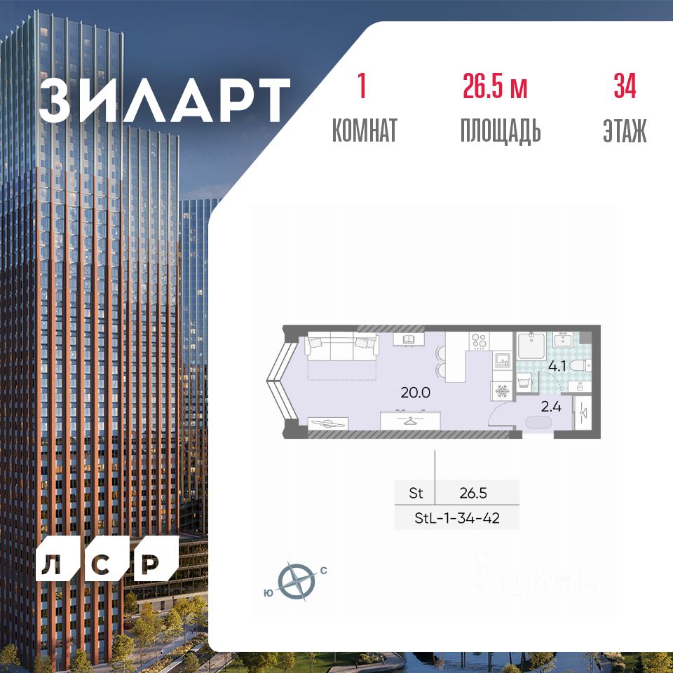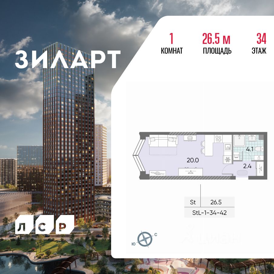 Продается квартира студия площадью 26.50 кв.м на 34 этаже 43 этажного монолитно-кирпичного дома в ЖК "ЗИЛАРТ" от Группа ЛСР. ЗИЛАРТ СПАРК — новый дом бизнес-класса в жилом квартале "ЗИЛАРТ" высотой 150 метров. Он сочетает в себе современную архитектуру, передовые технологии и восхитительные виды на ландшафтный парк "Тюфелева Роща" и бульвар Братьев Весниных. Близкое расположение к музейно-выставочному центру "Коллекция" и концертному залу создает вдохновляющую атмосферу места, где переплетаются жизнь и творчество.