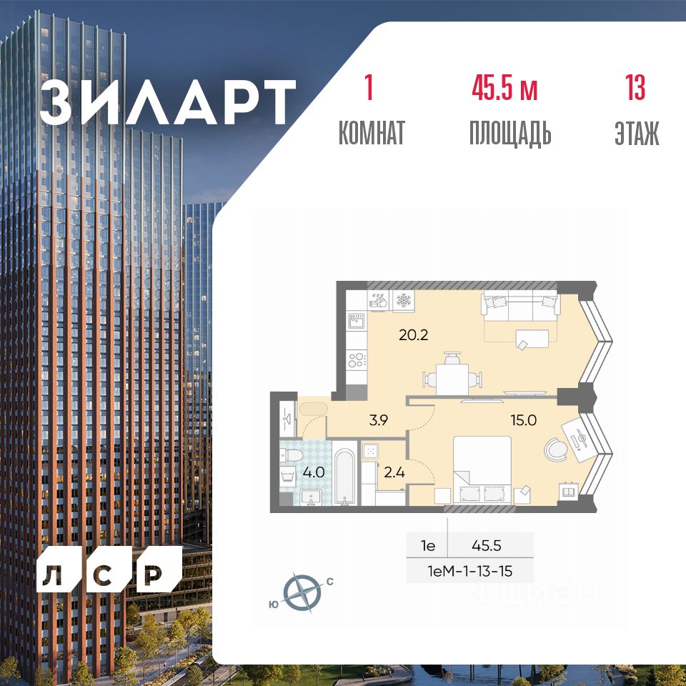 Продается 1-комн. кв-ра площадью 45.50 кв.м на 13 этаже 43 этажного монолитно-кирпичного дома в ЖК "ЗИЛАРТ" от Группа ЛСР. ЗИЛАРТ СПАРК — новый дом бизнес-класса в жилом квартале "ЗИЛАРТ" высотой 150 метров. Он сочетает в себе современную архитектуру, передовые технологии и восхитительные виды на ландшафтный парк "Тюфелева Роща" и бульвар Братьев Весниных. Близкое расположение к музейно-выставочному центру "Коллекция" и концертному залу создает вдохновляющую атмосферу места, где переплетаются жизнь и творчество.