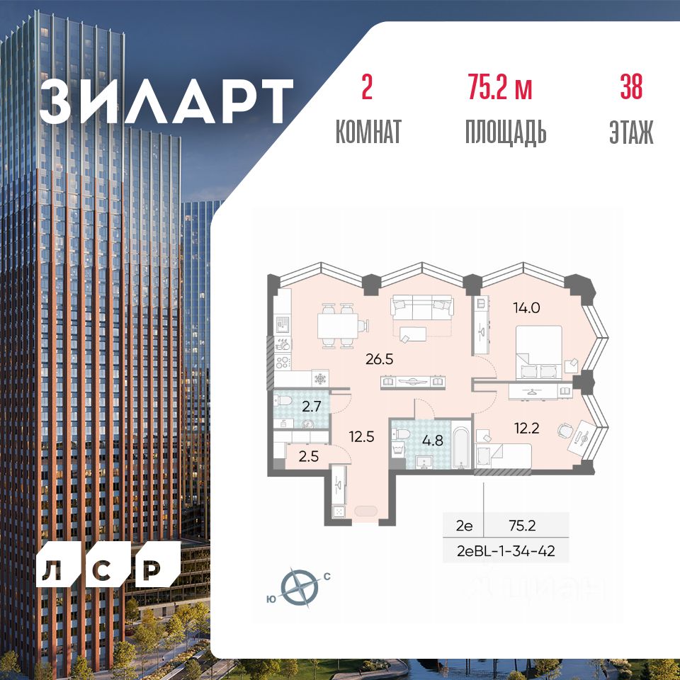 Продается 2-комн. кв-ра площадью 75.20 кв.м на 38 этаже 43 этажного монолитно-кирпичного дома в ЖК "ЗИЛАРТ" от Группа ЛСР. ЗИЛАРТ СПАРК — новый дом бизнес-класса в жилом квартале "ЗИЛАРТ" высотой 150 метров. Он сочетает в себе современную архитектуру, передовые технологии и восхитительные виды на ландшафтный парк "Тюфелева Роща" и бульвар Братьев Весниных. Близкое расположение к музейно-выставочному центру "Коллекция" и концертному залу создает вдохновляющую атмосферу места, где переплетаются жизнь и творчество.