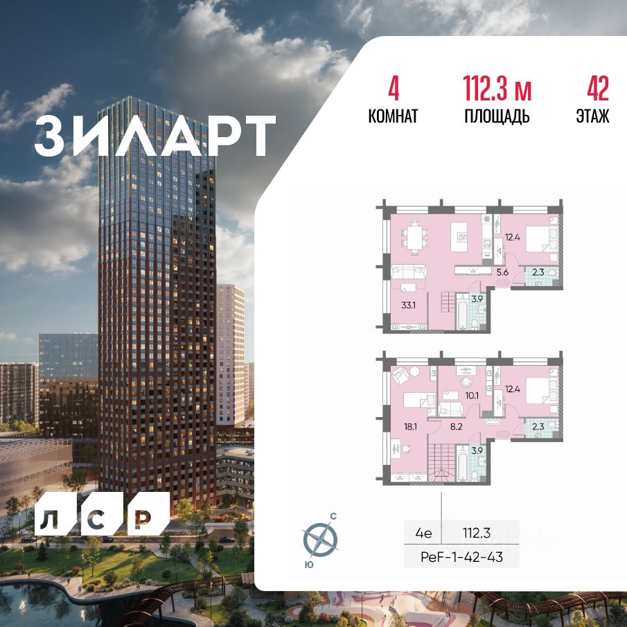 Продается 4-комн. кв-ра площадью 112.30 кв.м на 42 этаже 43 этажного монолитно-кирпичного дома в ЖК "ЗИЛАРТ" от Группа ЛСР. ЗИЛАРТ СПАРК — новый дом бизнес-класса в жилом квартале "ЗИЛАРТ" высотой 150 метров. Он сочетает в себе современную архитектуру, передовые технологии и восхитительные виды на ландшафтный парк "Тюфелева Роща" и бульвар Братьев Весниных. Близкое расположение к музейно-выставочному центру "Коллекция" и концертному залу создает вдохновляющую атмосферу места, где переплетаются жизнь и творчество.