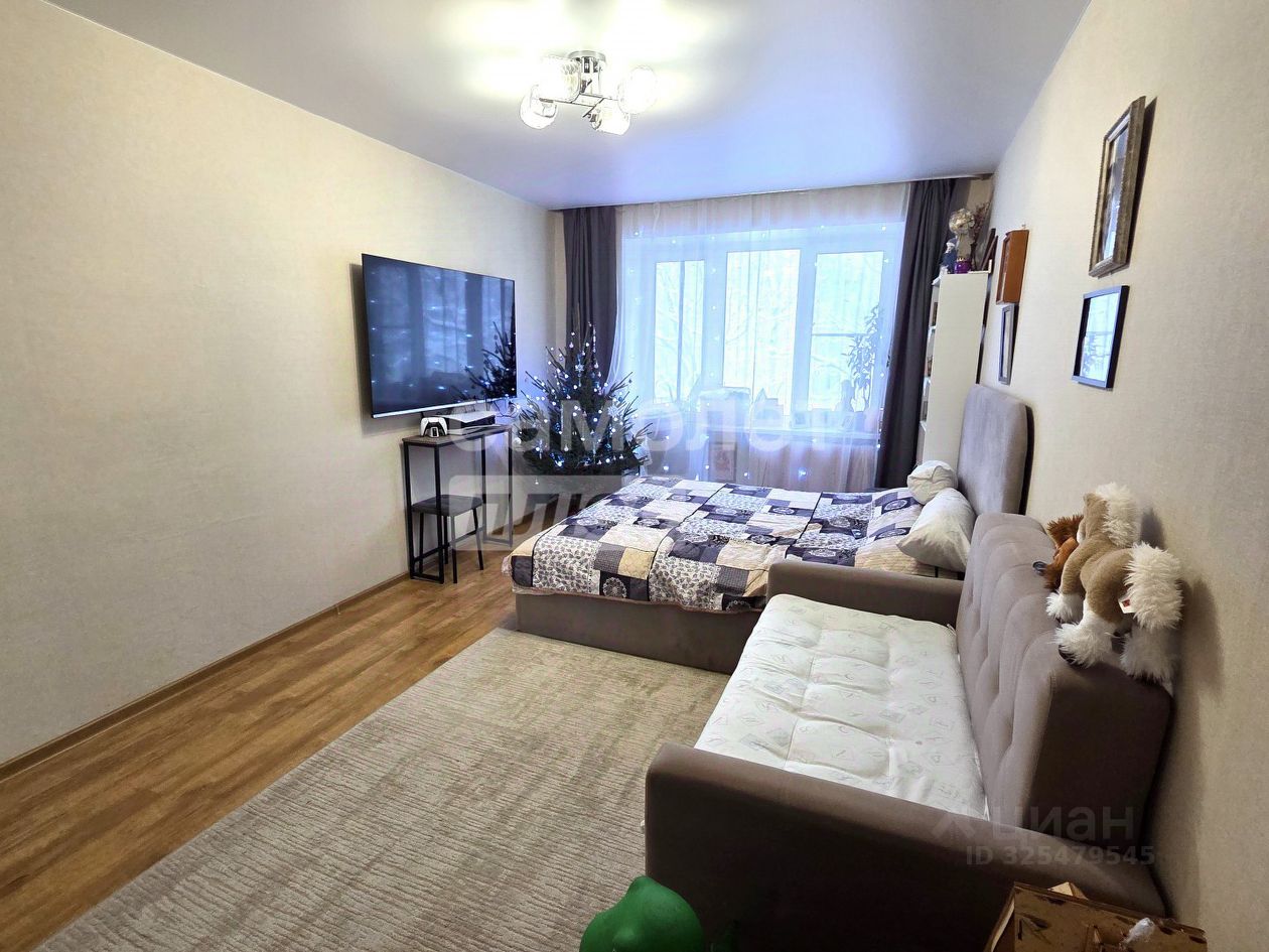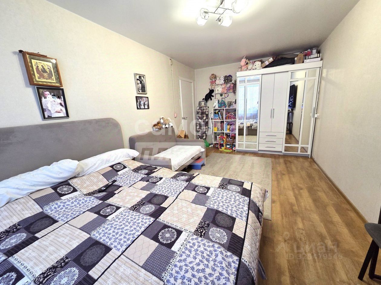 Просторная комната с хорошей звукоизоляцией, качественный ремонт с использованием современных материалов, есть небольшой балкон с видом на зелёный парк.