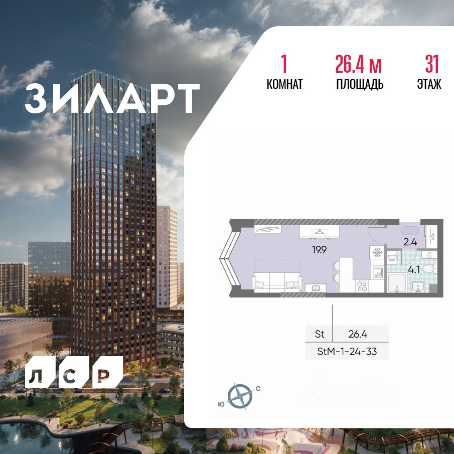 Продается квартира студия площадью 26.40 кв.м на 31 этаже 43 этажного монолитно-кирпичного дома в ЖК "ЗИЛАРТ" от Группа ЛСР. ЗИЛАРТ СПАРК — новый дом бизнес-класса в жилом квартале "ЗИЛАРТ" высотой 150 метров. Он сочетает в себе современную архитектуру, передовые технологии и восхитительные виды на ландшафтный парк "Тюфелева Роща" и бульвар Братьев Весниных. Близкое расположение к музейно-выставочному центру "Коллекция" и концертному залу создает вдохновляющую атмосферу места, где переплетаются жизнь и творчество.