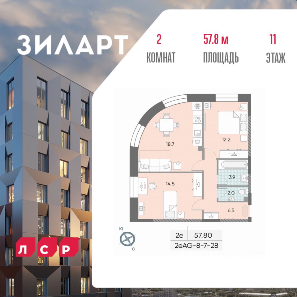 Продается 2-комн. кв-ра площадью 57.80 кв.м на 11 этаже 28 этажного монолитно-кирпичного дома в ЖК "ЗИЛАРТ" от Группа ЛСР. ЗИЛАРТ ГРАНД — новый дом в сердце квартала "ЗИЛАРТ". Архитектурный проект разработан бюро "Цимайло Ляшенко и Партнеры". Дом представляет собой семь башен, объединенных единым стилобатом. ЗИЛАРТ ГРАНД уникален своей необыкновенной архитектурой благодаря чередованию фасадов, текстур и материалов.