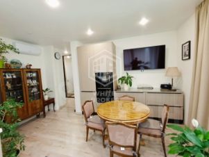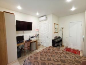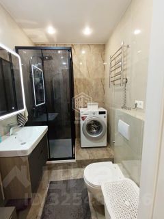 В квартире две полноценные спальни, одна из которых имеет собственную ванную комнату. Дополнительный санузел с душевой кабиной расположен в холле. Для поддержания комфортной температуры установлены кондиционеры. Есть собственное машиноместо, в стоимость квартиры не входит.