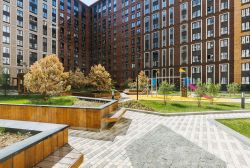 Инфраструктура: большая территория с двором-парком, летним фонтаном и зимним катком, закрытые внутренние дворики для прогулок с детьми. Собственный фитнес-клуб с бассейном Gold's Gym, ВкусВилл, подземный паркинг, кафе, салоны красоты.