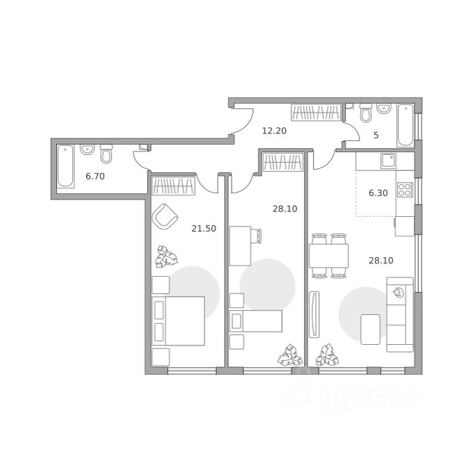 Продаётся 3-комнатная квартира 637, площадью 103,20 м², на 2 этаже в ЖК "Тринити" корпус 5. Стоимость — от 29119219 руб. Квартира без отделки, планировка односторонняя, окна во двор.