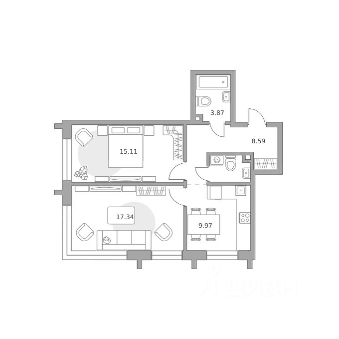 57,38 м²