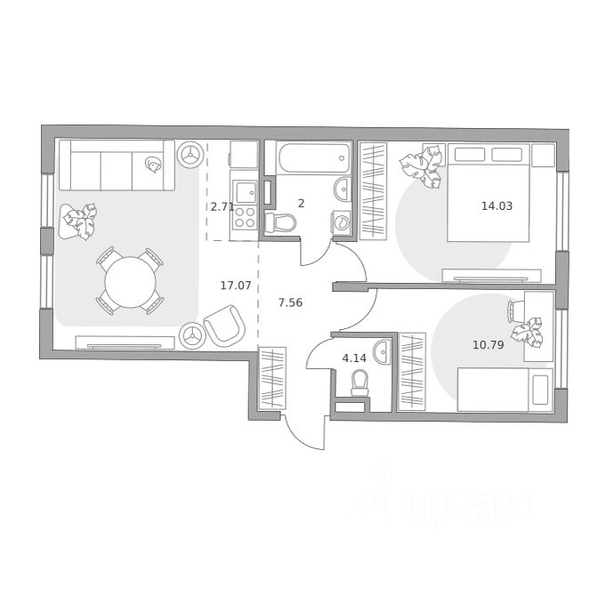 58,3 м²